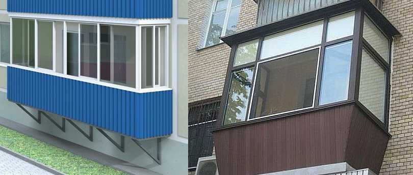 Если для расположенных высоко балконов насколько прочный материал некритично, то для нижних этажей очень важно. Потому внизу чаще балконы снаружи обшивают металлическим сайдингом или профлистом