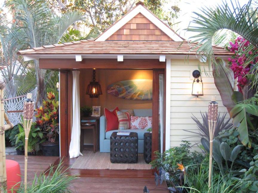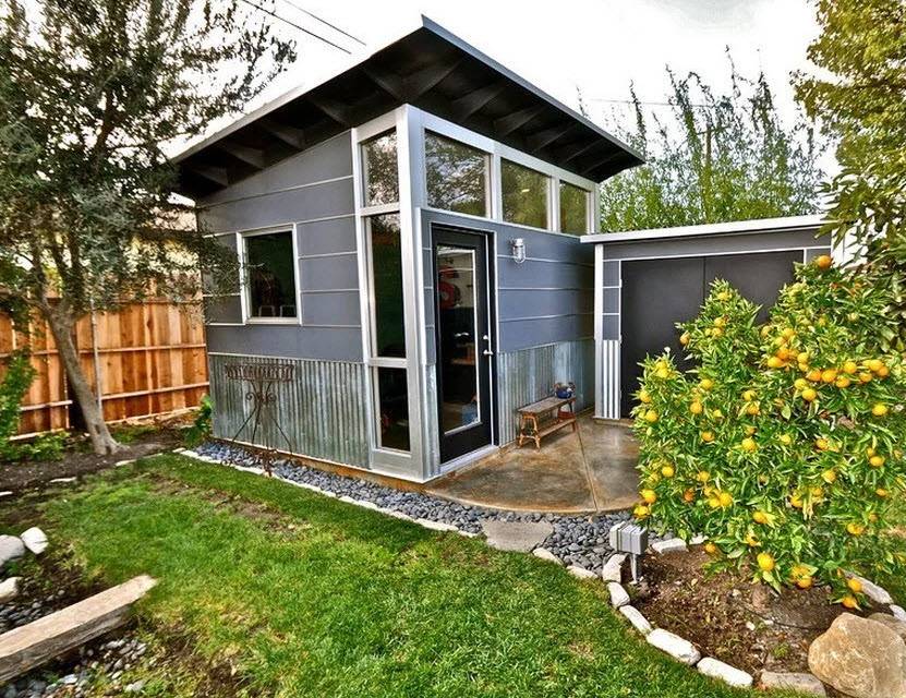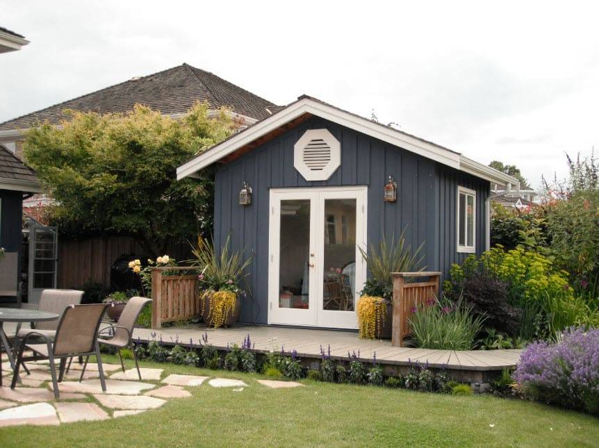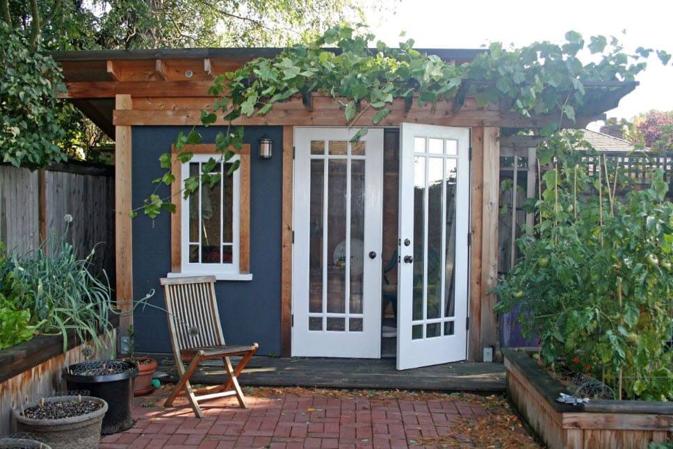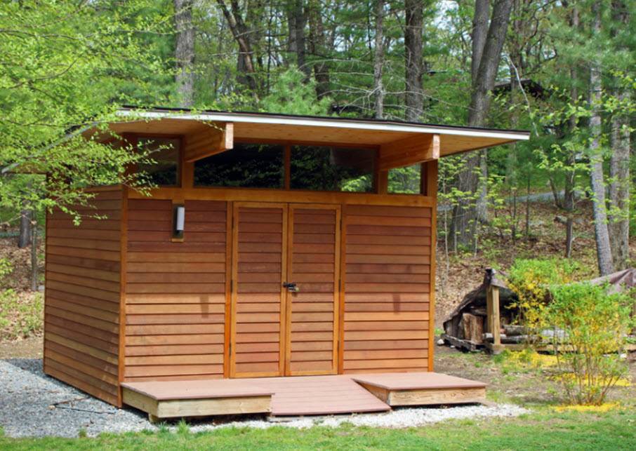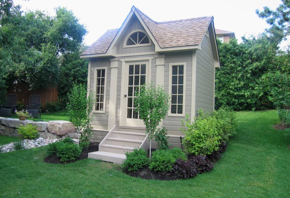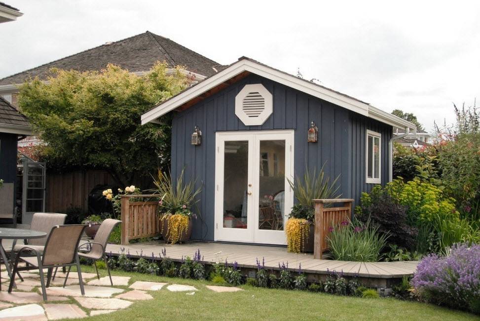 При своих небольших размерах, хозблоку для дачи придется выполнять целый ряд функций. Не стоит превращать его лишь кладовую, а место отдыха переносить под навес. Процесс постройки основного дома может затянуться, да и в непогоду под навесом не сильно спрячешься. Впоследствии утративший актуальность объект можно реорганизовать в гостевую комнату.