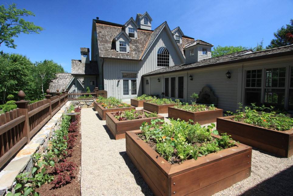 Для зрительного разграничения придомовой территории можно использовать разнообразное озеленение. Например, можно применить маленькие заборчики в оформлении двора из многолетних растений, однолетних цветов и плотных кустов. Для окружения спортивной площадки или зоны отдыха подойдет приземистый забор-штакетник.
