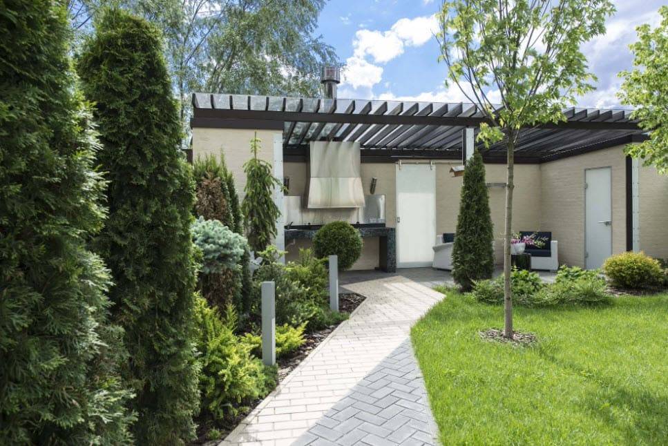Если планировка и размеры постройки определены, то самое время найти место на участке для ее строительства. Стоит напомнить, что все постройки, связанные с выделением сильного и неприятного запаха, а также строения, требующие утилизации веществ нужно расположить как можно дальше от частного дома. Если постройка касается отдыха, готовки или прочих «домашних» забот, то ее можно расположить вблизи с жилым сооружением. Выбор места для хозпостройки или комплекса определяет внешний вид, цвет и форму конструкции. Если частный дом имеет оригинальную форму и выдержан в определенном стиле, то дополнительная постройка должна его дополнять, подчеркивать, а не противоречить стилистике жилья.