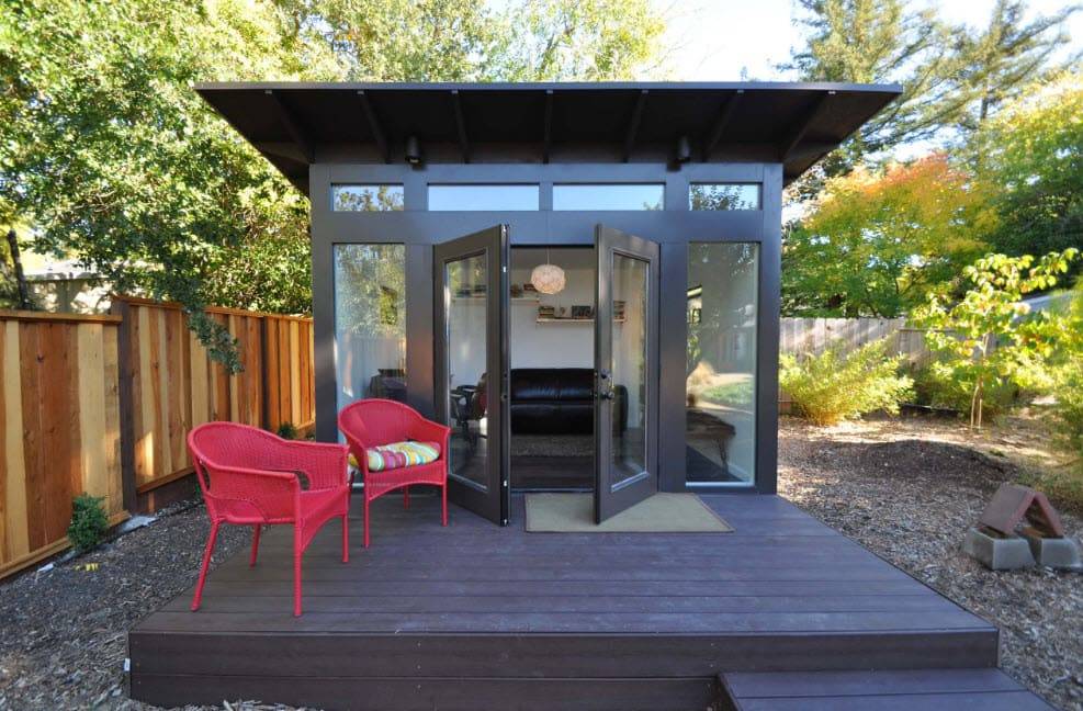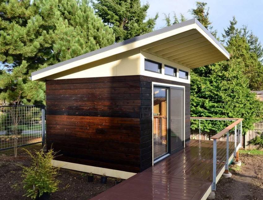 В хозблоке для дачи можно устроить гостевую комнату