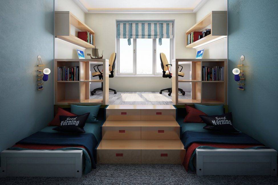 Подобные комплексы делают не только для детских комнат. Можно совместить спальную зону вместе с рабочим местом, гардеробом или местом для приема гостей. Продумав все свои пожелания можно заказать комплекс по индивидуальному плану.