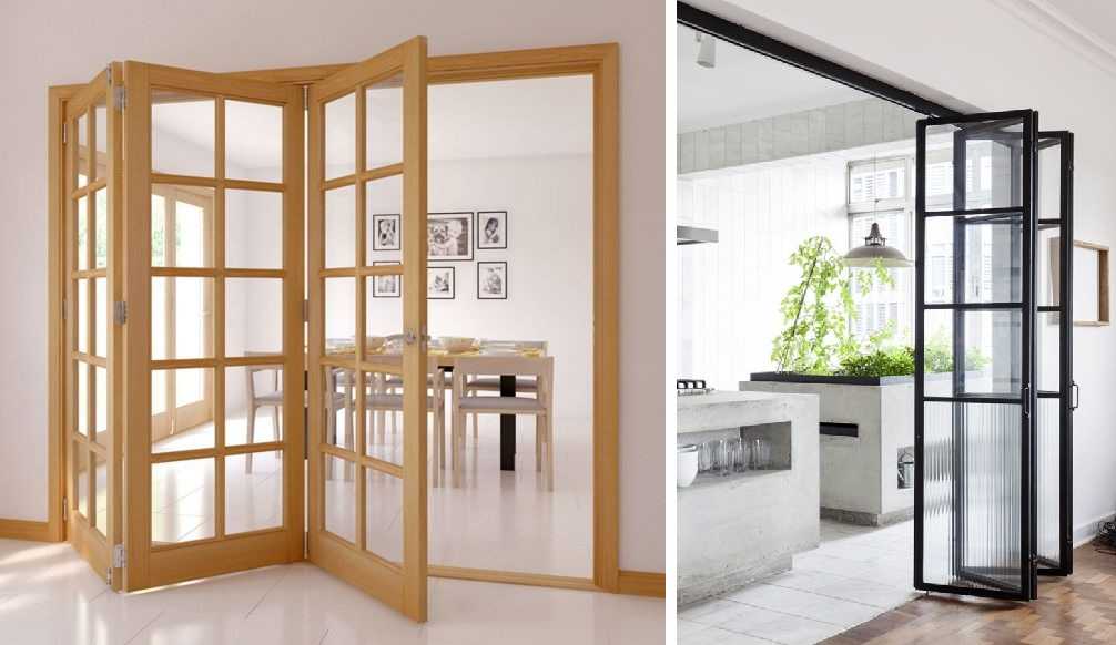 Разновидностью двери-гармошки является дверь-книжка. В этом случае используется две створки. По конструктивным особенностям они больше напоминают ширму, чем полноценную дверь.