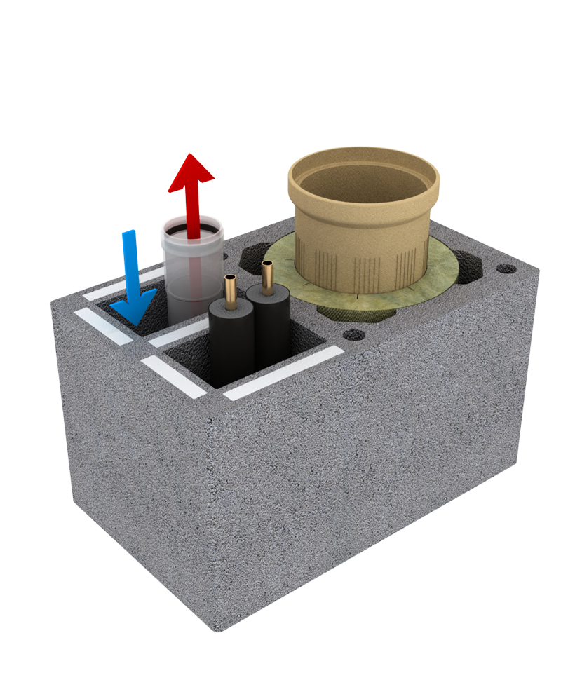 - QUADRO – керамический дымоход для подключения нескольких отопительных котлов в многоквартирных домах.