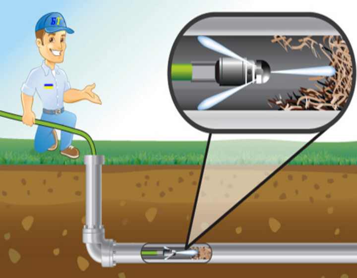 Такой прибор представляет собой трубу из толстой резины, причем на ее конце закреплен особый наконечник. Через трубку подается вода под большим давлением, причем нижнее значение равно 190 МПа, и она распределяется через наконечник. Вода помогает оказывать сильное воздействие на отложения, а большая длина троса дает возможность пользоваться оборудованием для того, чтобы очищать длинные и труднодоступные трубы с большим диаметром, даже дворовую канализацию.