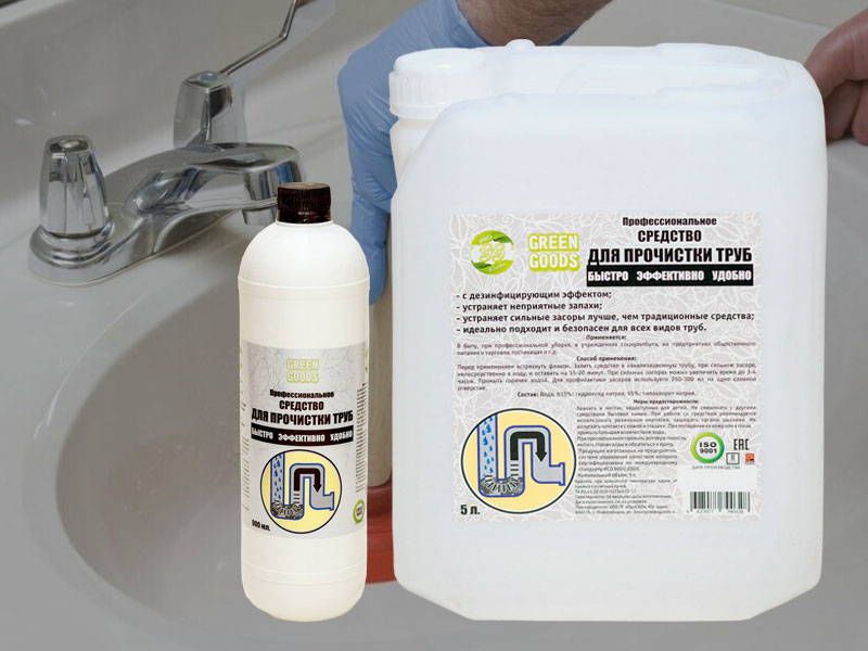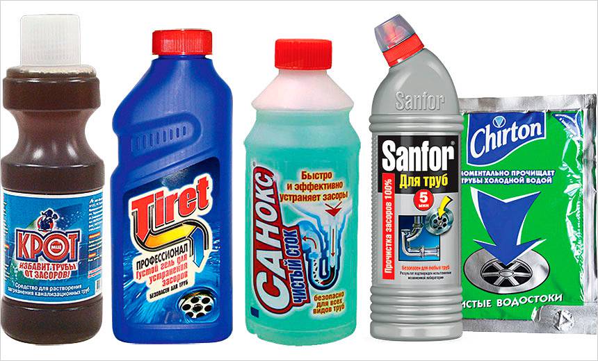 Если подручные средства не справляются с засорами, необходимо применять химические препараты. Они производятся в виде порошков, жидкостей, таблеток и гелей. В состав химических средств входит щелочь или кислота, поэтому они эффективно устраняют жировые загрязнения в трубах.