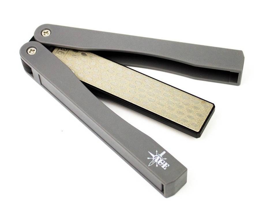 Складная точилка станет отличным выбором для любителей путешествий. Здесь производитель предусмотрел два уровня зернистости рабочей части. Кроме того, заточку инструмента можно проводить совершенно под любым углом.