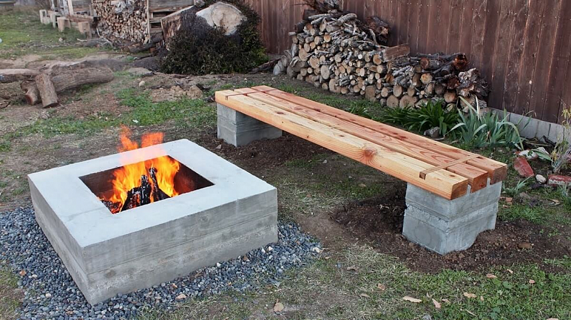 - Далее на оборудовать получившуюся площадь можно скамейками или иными местами для отдыха. При установке таковых, нужно помнить, то минимальное расстояние от очага их должно составлять 80 сантиметров;