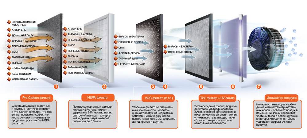 В зависимости от поставленных задач и самого распространенного загрязнителя воздуха нужно выбирать вид фильтра в устройстве: