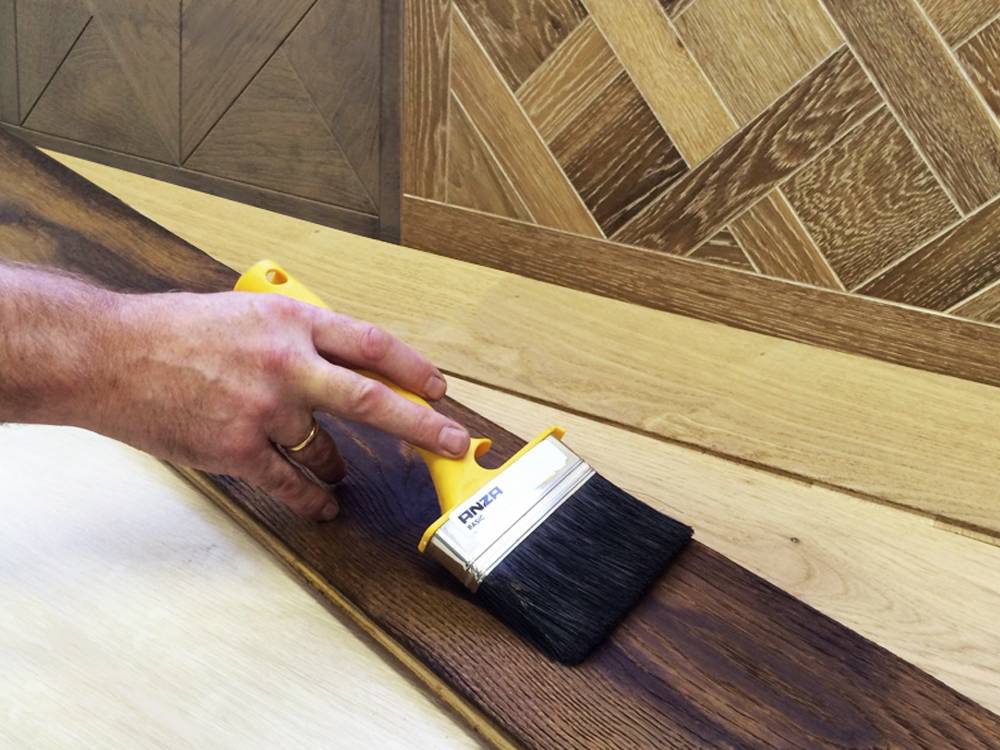 При нанесении водной морилки нельзя возвращаться на прокрашенное место, иначе образуются темные пятна, которые сложно будет удалить.