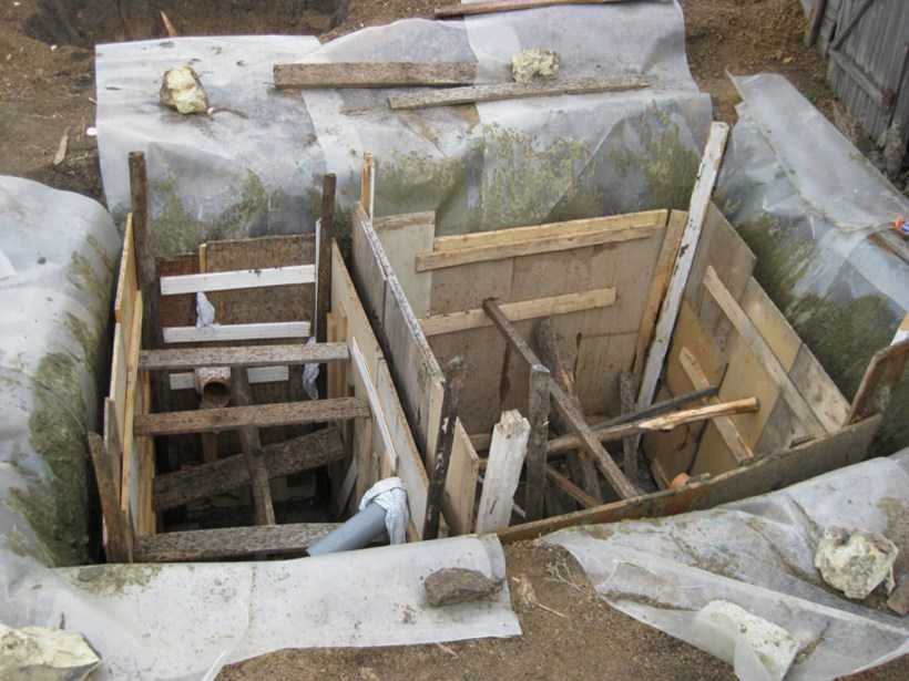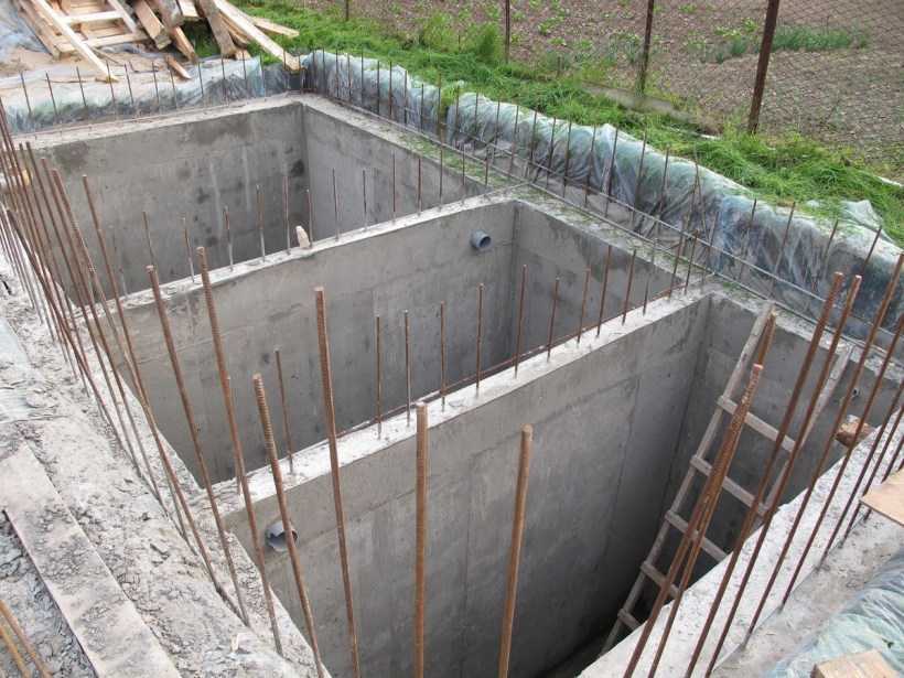 Если возможности завести кольца или найти еврокуб нет, то можно залить все бетоном. Отличный вариант для тех, кто ездит на дачу не часто и небольшой компанией. В этом случае есть плюс — делают только один бассейн, квадратной формы без дополнительной фильтрации. Инструкция: