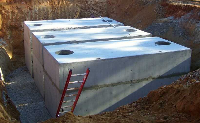 Здесь стоит учитывать, что каждая секция будет отвечать за свой фронт работы — перелив. Сверху все можно закрыть бетонной плитой, резервуар будет герметичным, но не очень привлекательным. Бетонный септик +своими руками делается в течение нескольких дней.