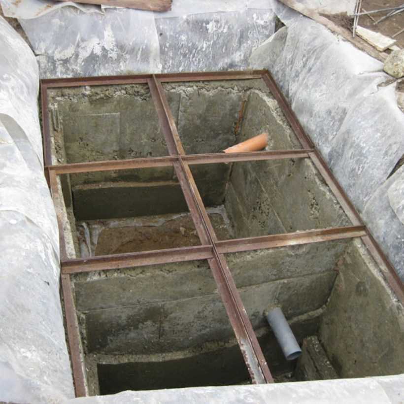 - Устанавливают в котловане железобетонные плиты в качестве основания для камер септика.
