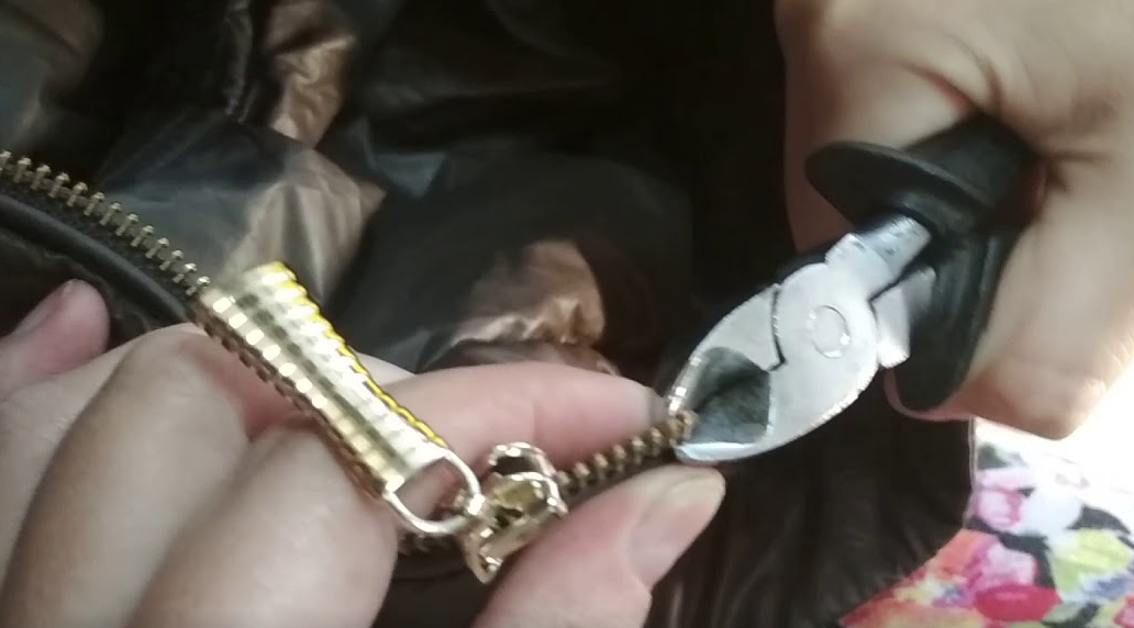 Если не удалось починить молнию плоскогубцами, можно попробовать использовать ножницы.