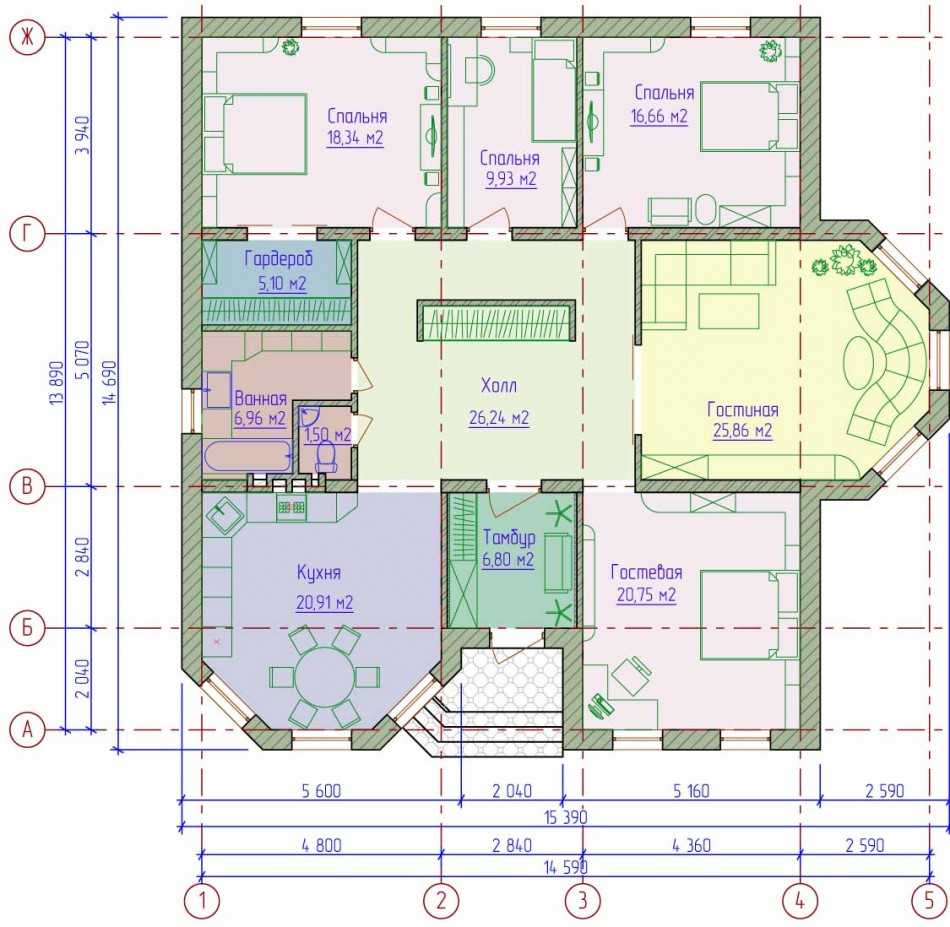 Планировка предполагает наличие следующих комнат в доме 10х10: