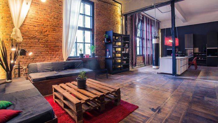 То же самое относится и к окнам: их стараются сделать как можно больше, так в помещение попадает больше света, и оно становится просторным. В таких комнатах стараются подчеркнуть небрежность оформления стен. На первый взгляд, когда помещение еще не обставлено мебелью и другими предметами интерьера, может даже показаться, что ремонт не завершен. Однако это неверно.