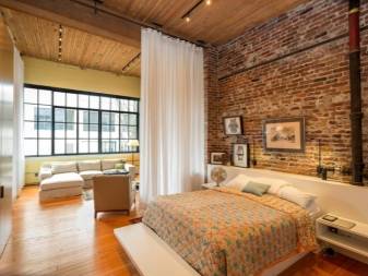 Квартира в лофт стиле интересна декоративными перегородками, которое отделяют комнаты друг от друга.