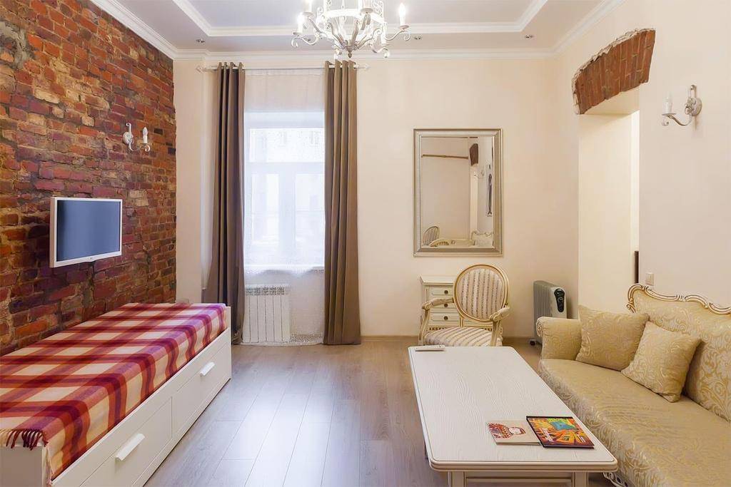 Использование ярких оттенков в оформлении маленьких студий будет не лучшим решением, потому что такие цвета делают помещение меньше. Следует остановиться на теплых, светлых, пастельных тонах, они делают комнату просторнее. Это касается не только поклейки обоев, но и выбора штор, мебели. Отличным дизайнерским решением будет использовать яркие цвета в качестве акцентов.