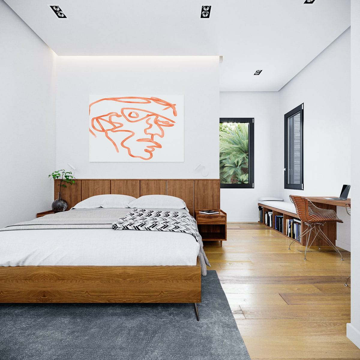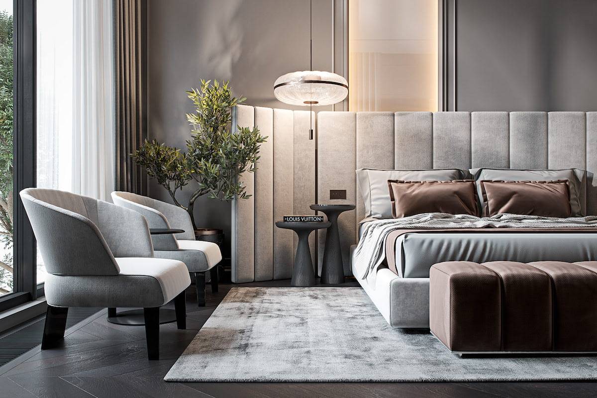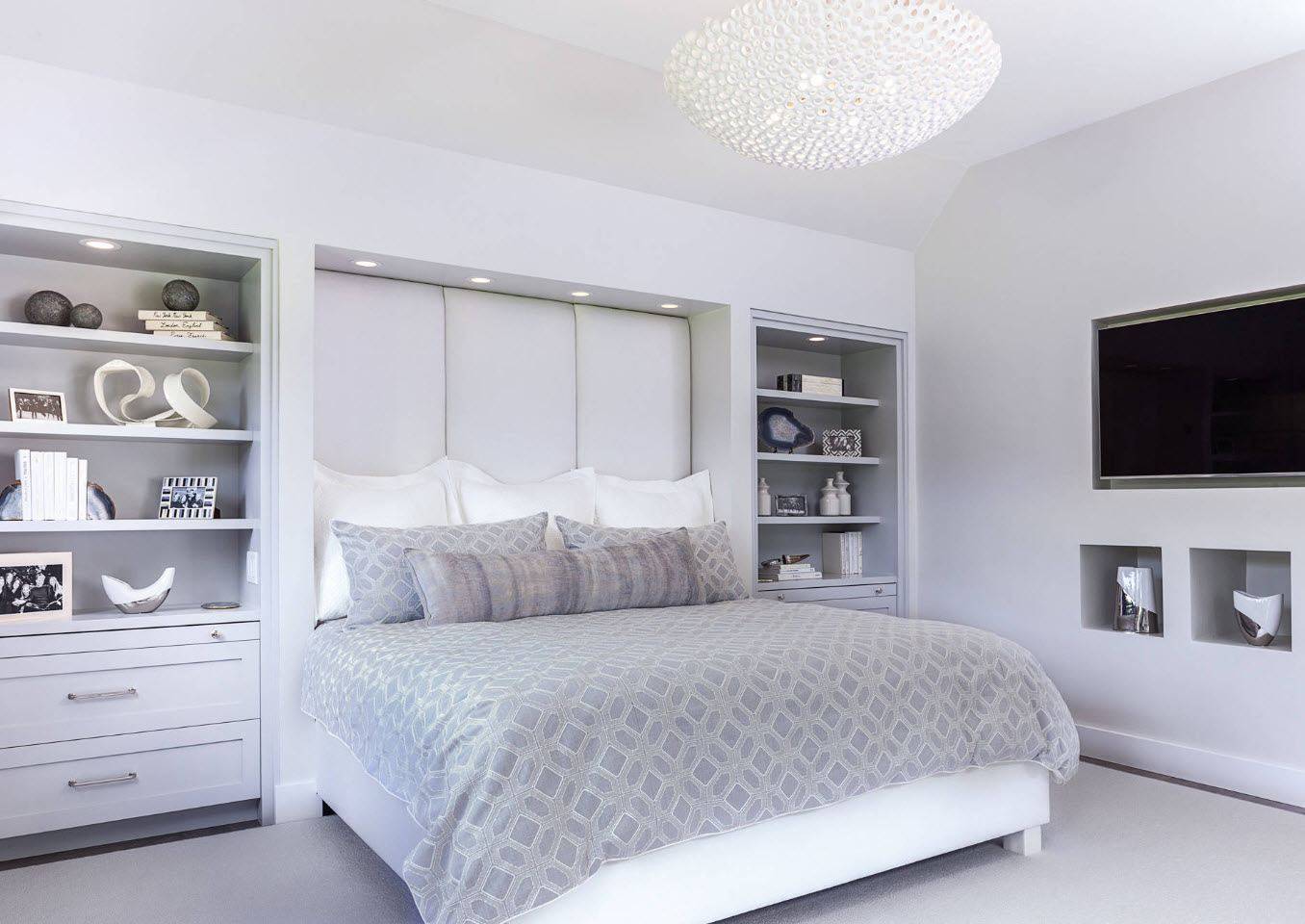 Кровать очень важна, ведь в ней мы проводим третью часть жизни. От степени удобства зависит, насколько здоровым будет сон, и в каком настроении мы проснемся. Кровать представляет собой конструкцию, состоящую из каркаса с ламелями, поверх которых устанавливается матрас. Изделие наделено изголовьем, может содержать бельевые ящики, доступ к которым обеспечивает подъемный, выдвижной или выкатной механизм. Не все кровати в современном стиле имеют каркас, иногда его подменяют подиумом. Отсутствие ламелей увеличивает жесткость, но при правильно подобранном матрасе неудобство не ощущается.