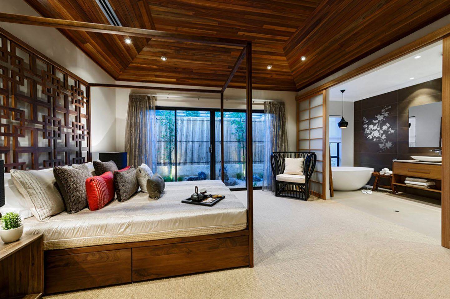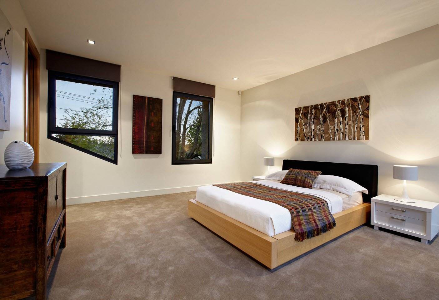 Однако здесь важно не переборщить, так как мебели в спальне не должно быть много. Традиционная кровать, тумбочки, стенной шкаф, может быть кресло с торшером, если площадь позволяет – это обычные вещи