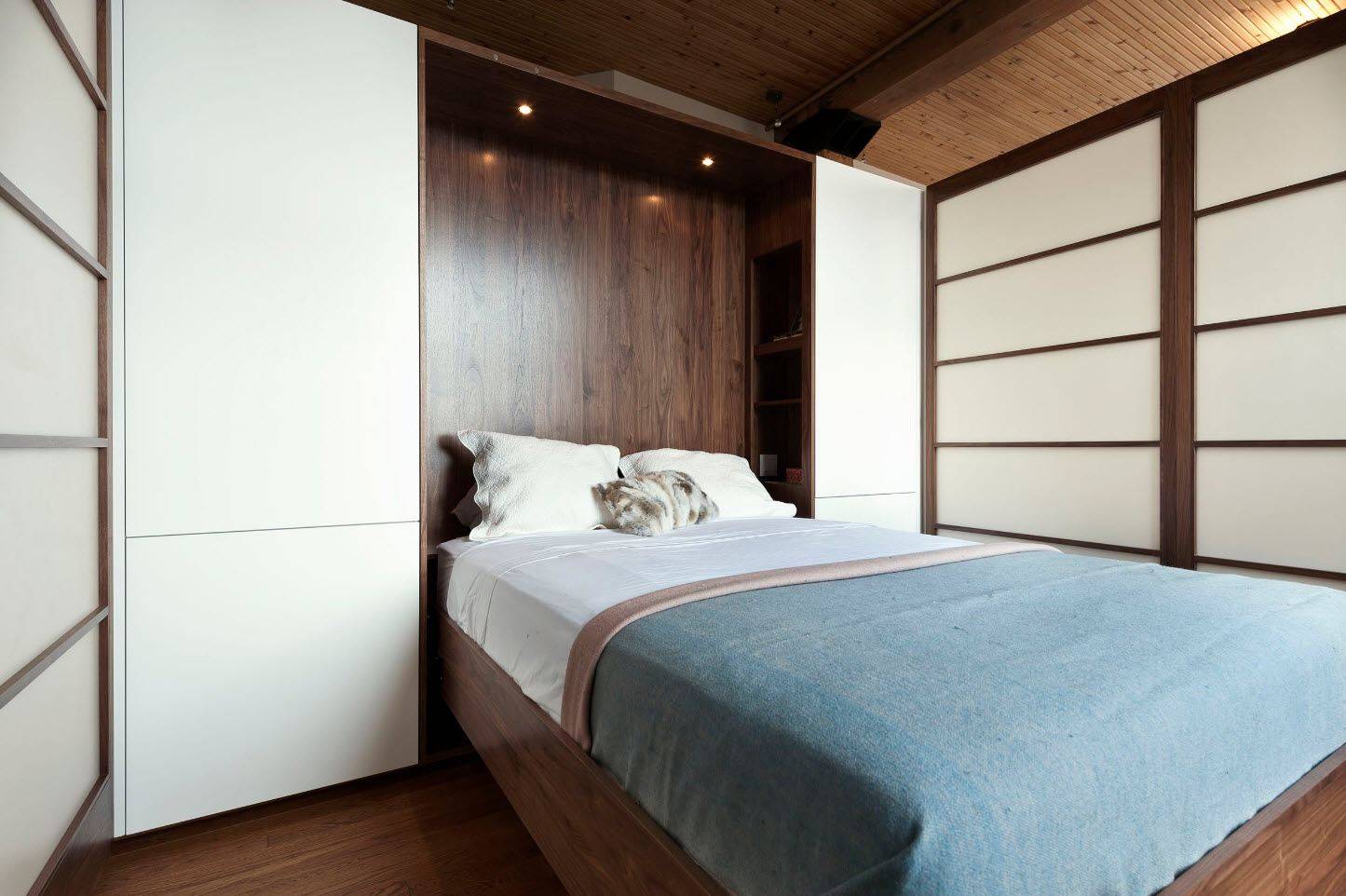 Это предложения для людей с небольшими спальнями. К сожалению, высокая функциональность мебели «2 в 1» несет некоторые неудобства. Как правило, матрас, используемый в этом типе кровати, не может обеспечить анатомически соответствующее положение позвоночника, что приводит к заболеваниям в пояснично-крестцовом отделе и шее. Их практичность остается плюсом, потому что днем такие двуспальные кровати могут складываться и использоваться как часть набора отдыха или вовсе убираться в шкаф, освобождая полезное пространство комнаты. Это способ создания привлекательного дизайна и эффективного использования небольшой спальни, где нет возможности установить традиционную мебель. Подголовник кровати и ее рама могут быть объединены со шкафом.