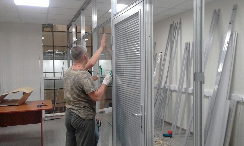 Если вы думаете о перегородках в офис для зонирования на этапе ремонта, конструкции устанавливаются после отделки помещения. Если сотрудники уже работают в офисе, монтаж перегородок можно совершить быстро, не останавливая рабочий процесс.