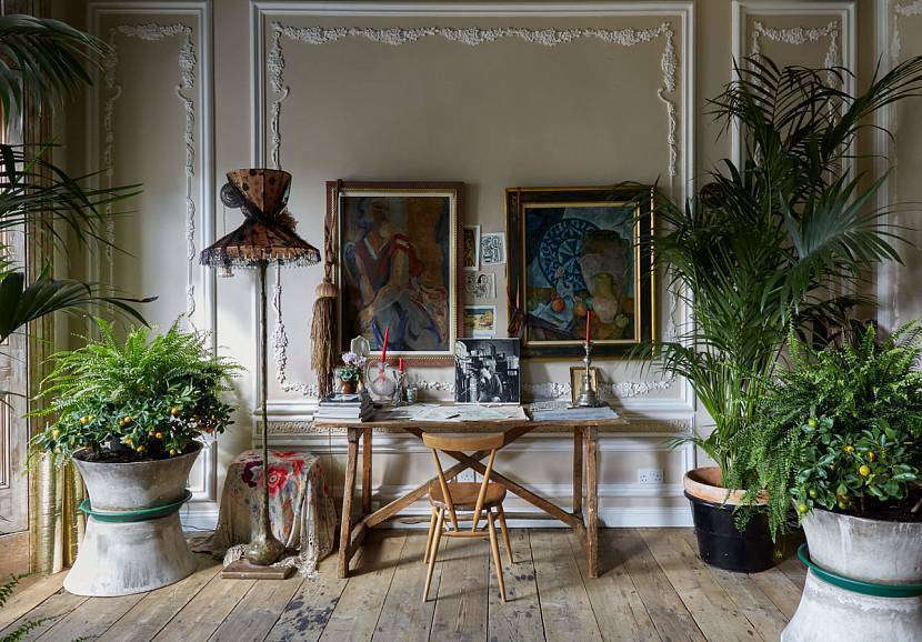 В интерьере бохо классика гармонично сочетаются простые и необычные предметы
