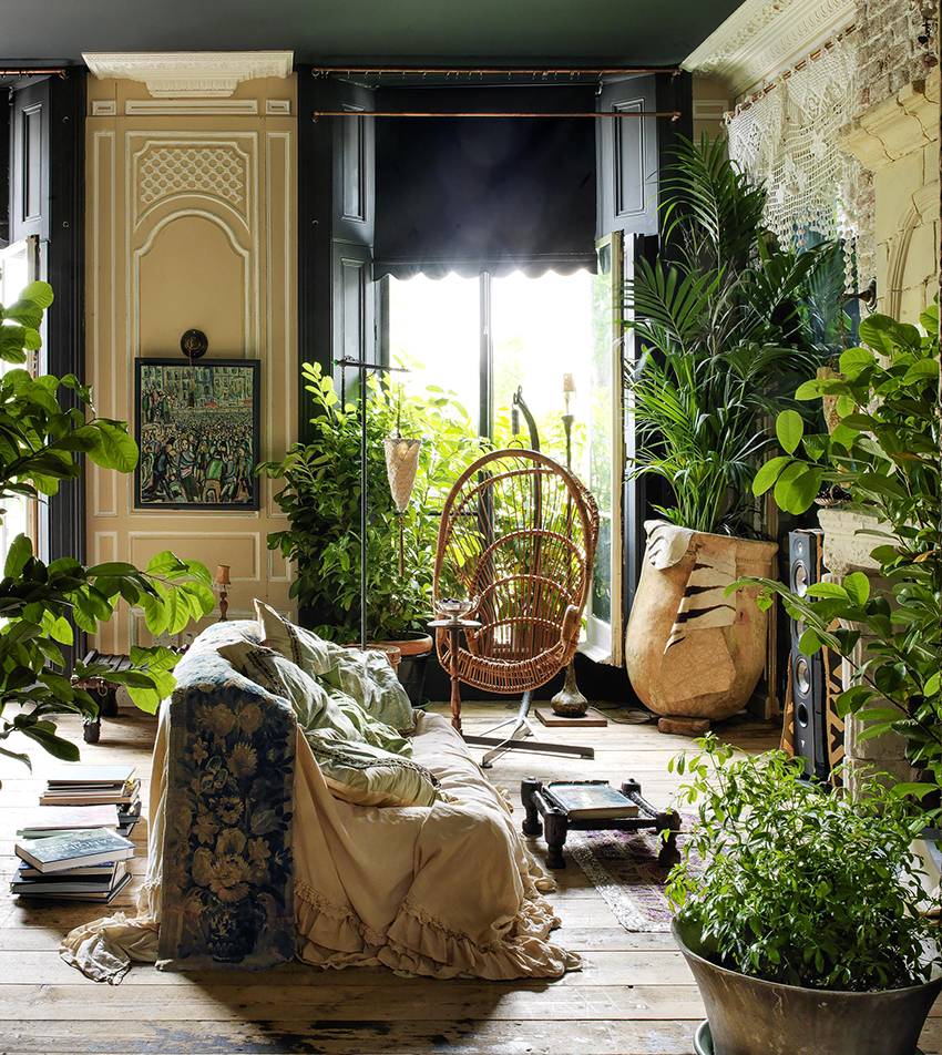 Нельзя не отметить тот факт, стиль бохо подразумевает наличие комнатных растений. Да-да, большого количества растений! А это настоящий рай для садоводов и ботаников. Зелень прекрасно дополняет комнату, и к тому же, смотрится органично.