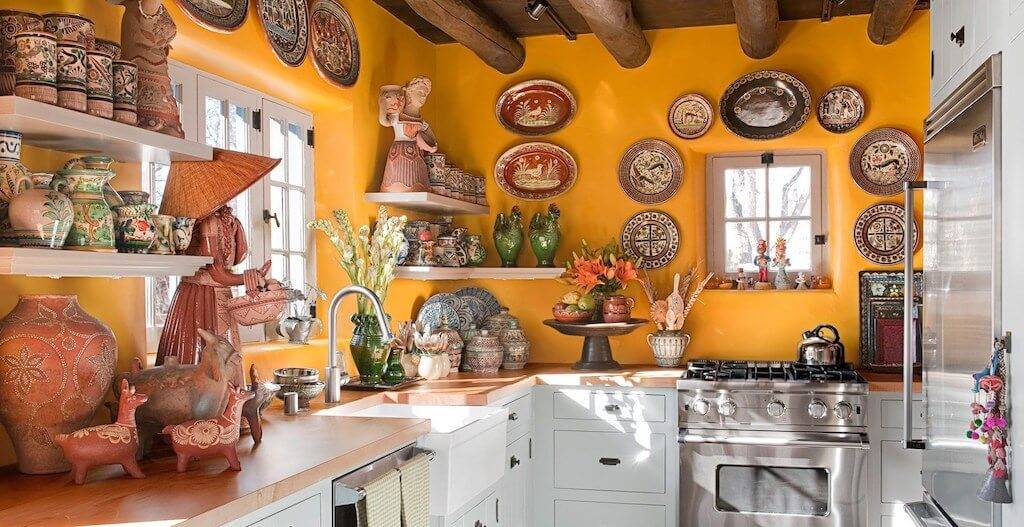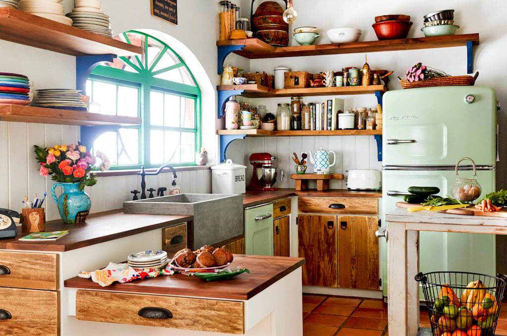 Стиль бохо на кухне с открытыми полками и декоративными элементами Источник stroy-podskazka.ru
