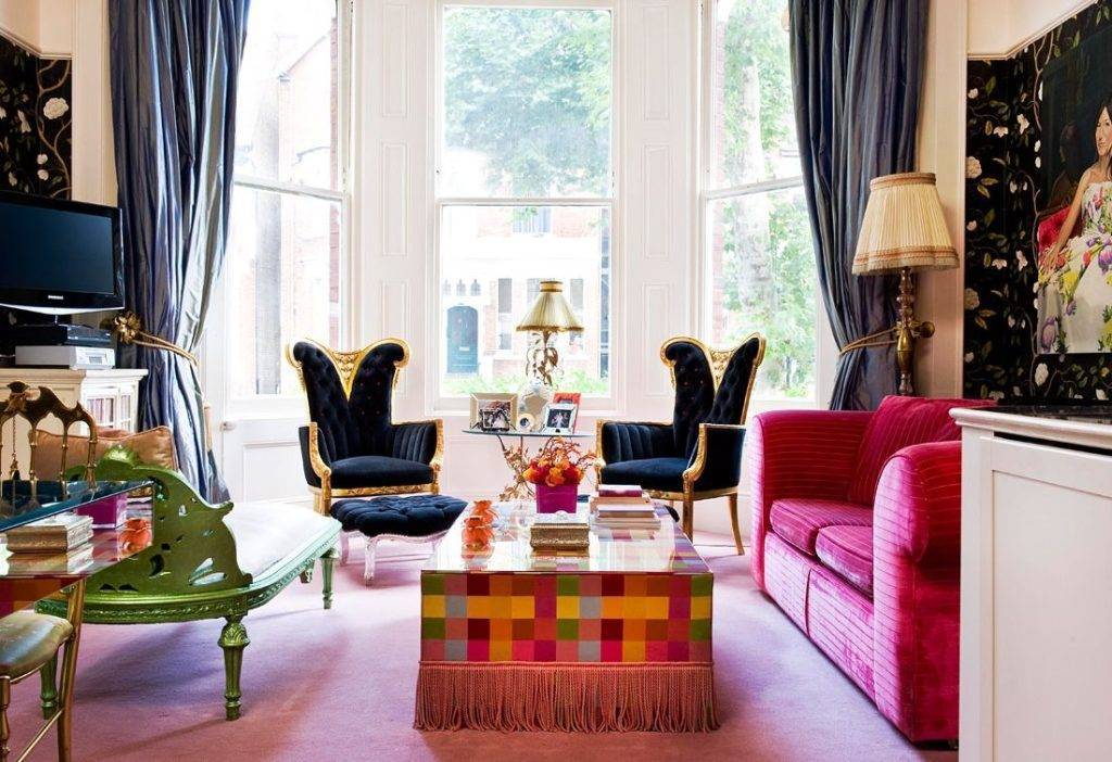 Одной из разновидностей Бохо шика является гламурный богемный стиль. Для такого интерьера характерно наличие картин из стразов и декора из перьев, а также преобладание в цветовой палитре кричащего розового цвета.