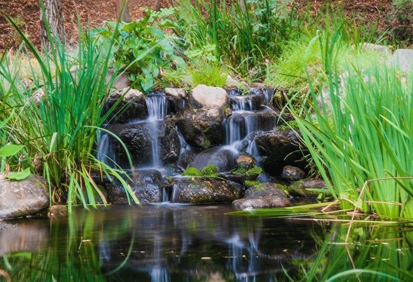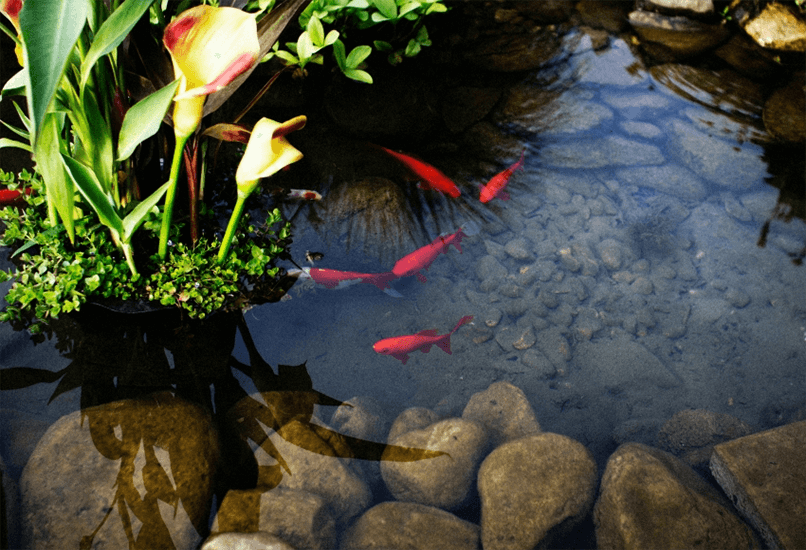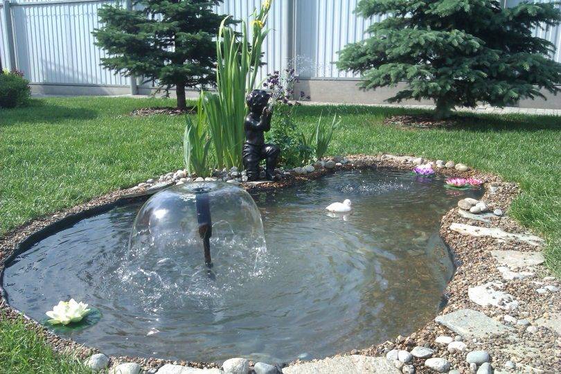 Если пруд нужен для дизайна территории, и увлажнения воздуха, а места не очень много, то делают выбор в пользу небольших водоемов. При желании запустить в пруд рыбок, надо будет поддерживать комфортный (для них) температурный режим воды.