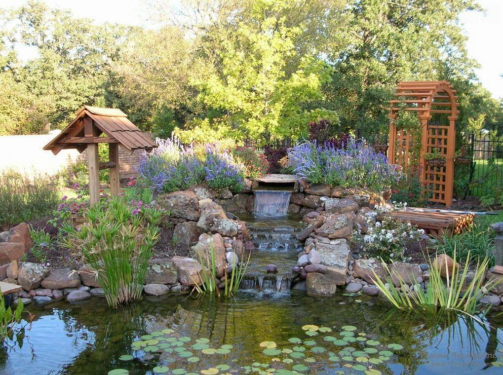 Лесные озерца, каскадные композиции, горные речки, ручейки, водопады, макси- и мини-пруды, болотца, античные, японские, китайские пруды – абсолютный простор для творчества. Приподнятый, заглубленный, с использованием любой емкости и необязательно вкопанный в землю. Смотрите фото, черпайте идеи.