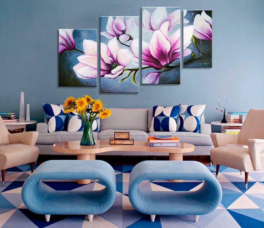Нужно отметить, что именно деление композиции на части уже несколько сезонов остается в приоритете у известных дизайнеров. Помимо формы, панно могут отличаться друг от друга по структуре.