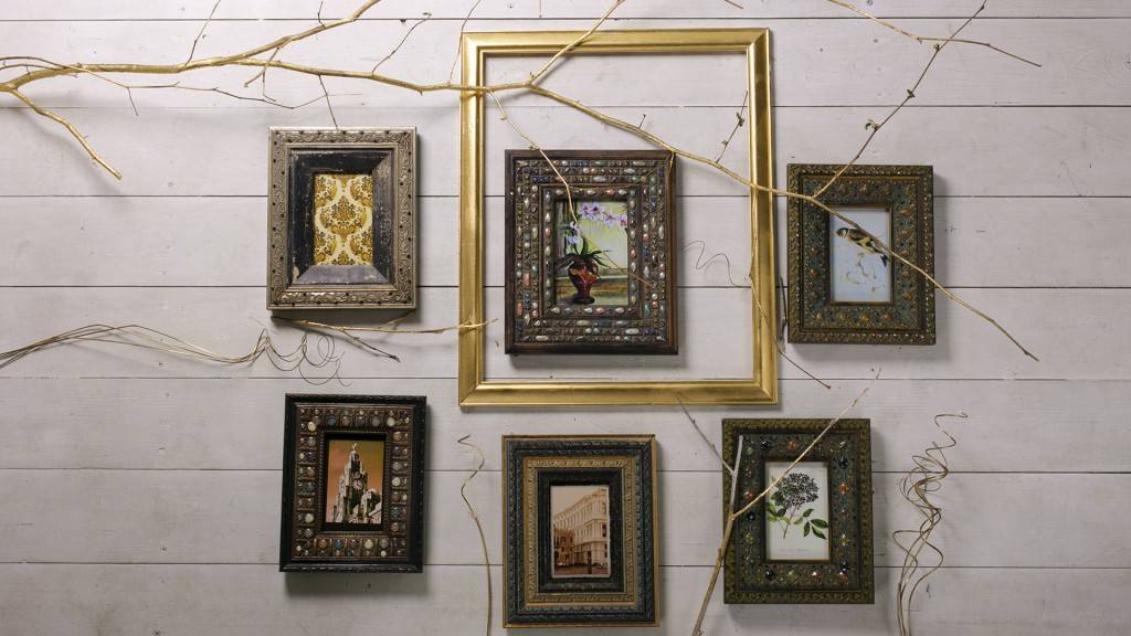 Популярный сегодня тренд — вставленные друг в друга рамки. Внутренние рамки должны быть пустыми. Можно поместить в них незатейливый сюжет в светлых тонах, чтобы он не соперничал с рамками. Внешние рамки должны быть стильными.