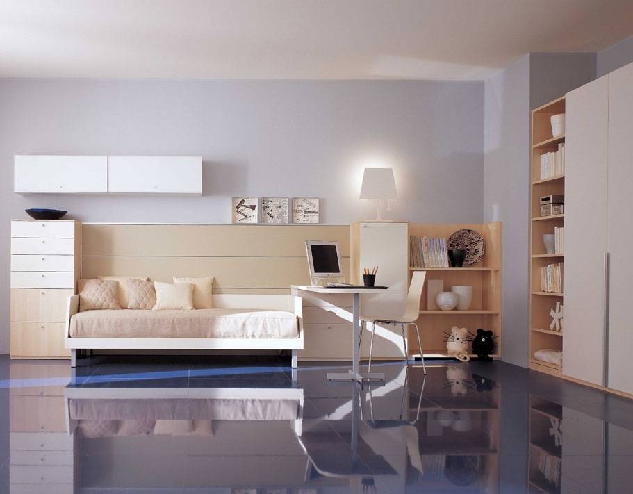 Нежные и романтичные оттенки сиреневого вполне способны заменить изрядно надоевший розовый, как раз в девичьих комнатах. Подменив цвет и разбавив его бежевым и кремовым, вы визуально раздвинете границы спальни. Чтобы она не выглядела скучной и размытой, внесите цветовые акценты – яркие монохромные постеры, цветное граффити на стенах, картины в насыщенных зеленых, малиновых, охристых оттенков.