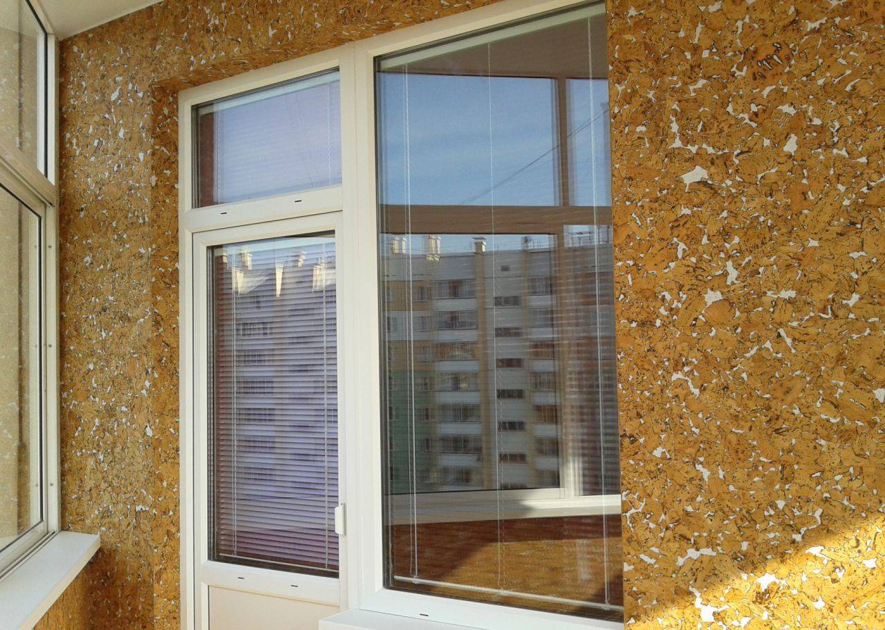 Этот материал является очень популярным для отделки балкона внутри. Производится пробка в виде листов из измельченной и спрессованной коры пробкового дерева, что покрывается шпоном. Достоинство пробки в сравнении с деревом в том, что она не нуждается в регулярных обработках, сохраняет микроклимат. Кроме этого стоит отметить экологическую безопасность материала, так как он не только безвредный, но еще и полезный для людей, что имеют заболевания дыхательных путей. Также пробка отлично подходит для аллергиков, не вызывает никаких заболеваний.