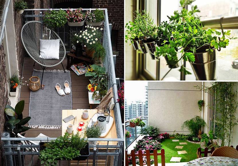 На открытом балконе можно создать сад из комнатных растений. Декоративная клетка с пернатыми питомцами дополнит дизайн.