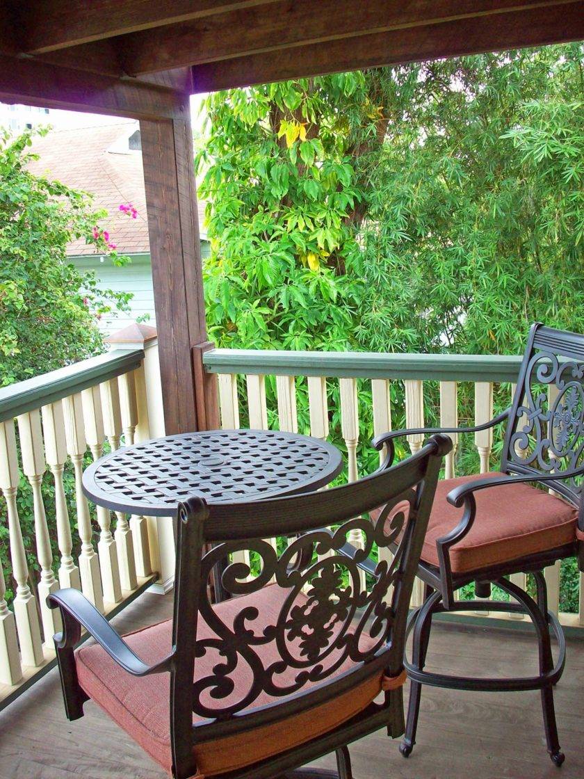 Самый подходящий вариант – столик и два стула. Это должна быть скромных размеров мебель, такую нередко можно найти в коллекциях садовой мебели. Часто в сезон на нее скидки, приобрести подходящий комплект для балкона не так и сложно.