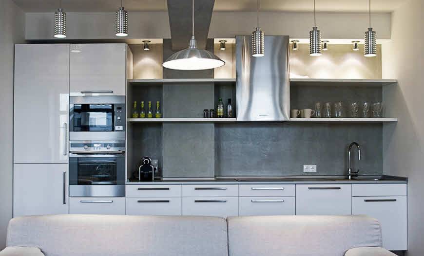 Если высота кухни позволяет, можно рассмотреть вариант реечного потолка, быстро монтируемого, скрывающего дефекты плит и простого в обслуживании – при сильных загрязнениях его просто моют