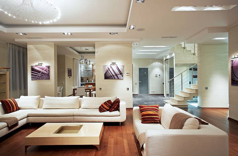 Дизайн зала в частном доме по форме «квадрат» рекомендуется проектировать с учетом: