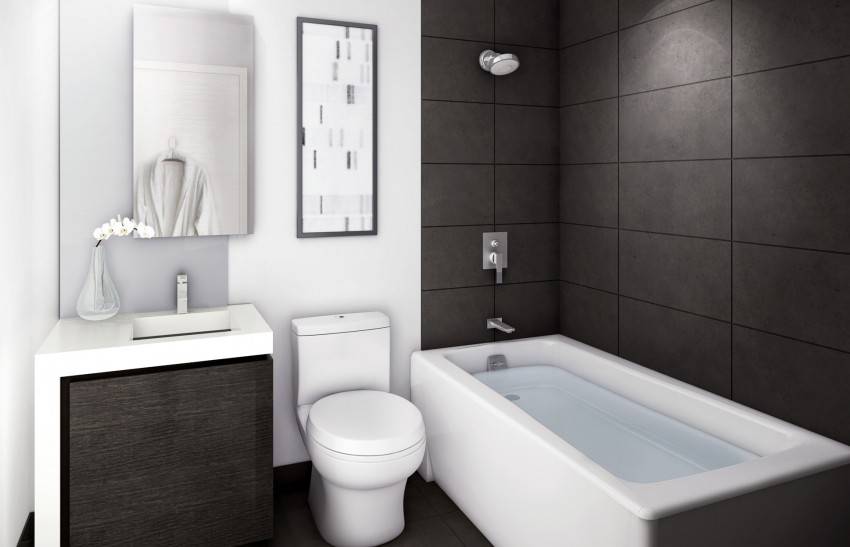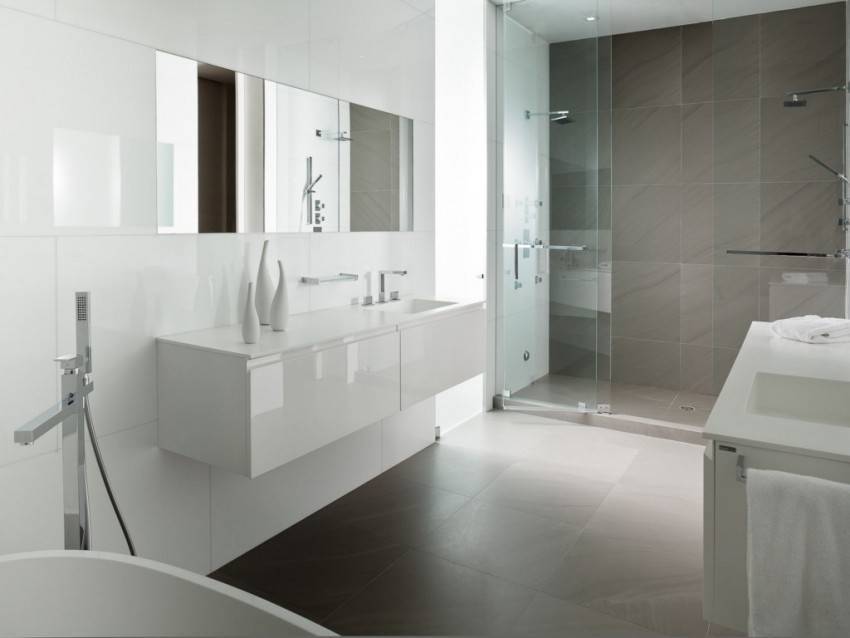 Не пренебрегайте умной техникой, такой как насадка на кран, или унитаз, экономящие воду. Сюда входит стиль минимализм, конечно же, так как не содержит в себе вычурного и необычного декора. Здесь можно создавать мягкий контраст, такой как два разных размера плит на стене.