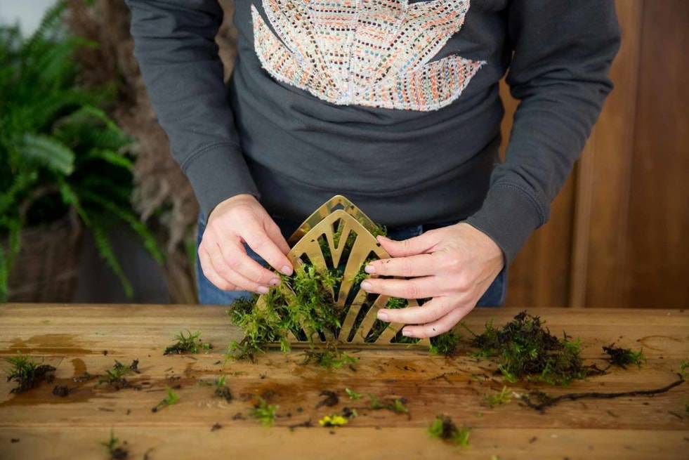 Различные вырезы также заполняем мхом, чтобы композиция выглядела более натурально.