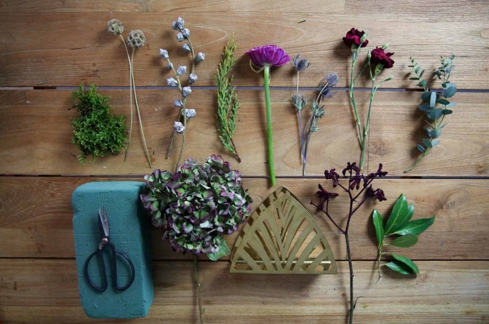 Чтобы сделать стильную флористическую композицию, подготовим следующее: