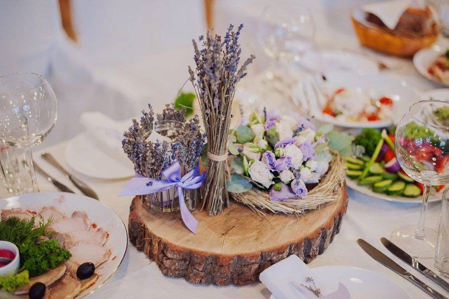 Без них, пожалуй, не обходится ни одна современная свадьба, тем более летняя. Для украшения столов используйте сезонные цветы: ромашки, васильки, герберы, подсолнухи, кустовые розы, хризантемы, гладиолусы и другие. Для рустикальной свадьбы соберите букеты из полевых цветов и сухоцветов. Для небольших столов подходят, соответственно, небольшие букетики. Чем больше стол – тем больше букет. Поместите их в вазочки или стаканы.