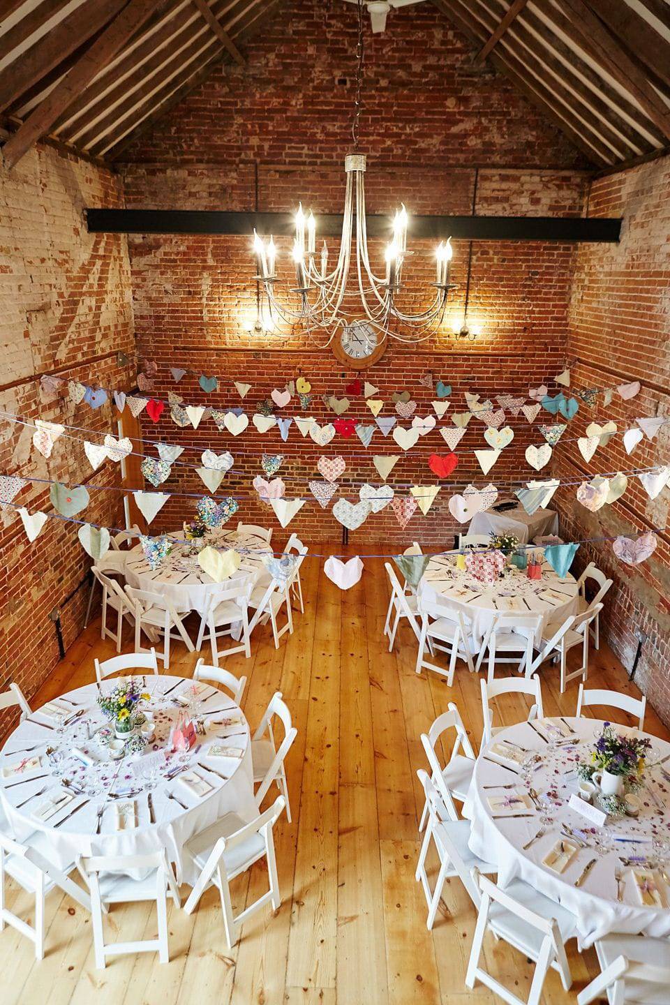 Летний жизнерадостный декор можно легко сделать своими руками из подручных средств – бумаги и ножниц. Отлично смотрятся гирлянды из бумажных бабочек и сердечек. Ярко будут выглядеть разновеликие бумажные помпоны и фонарики. Птички в технике оригами – тоже необычное решение для летней свадьбы.