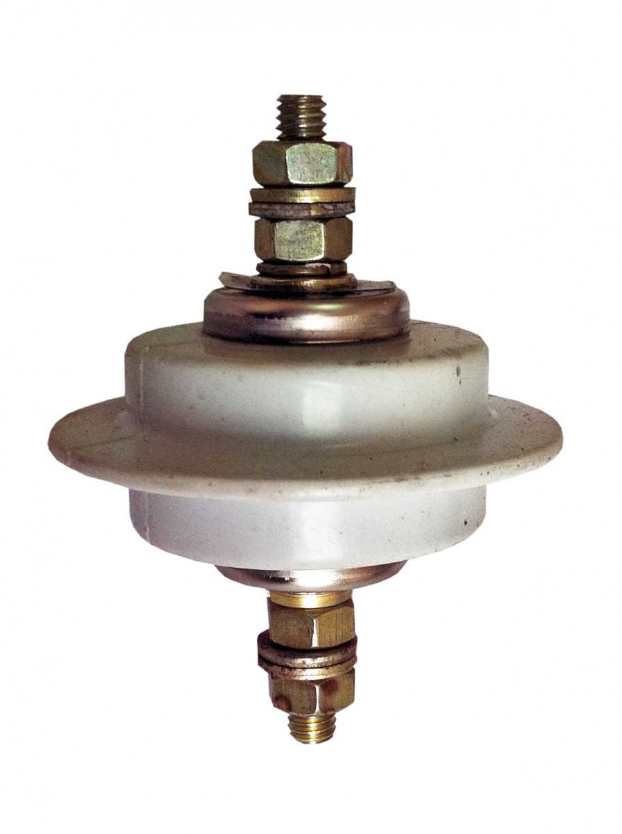 Если посмотреть на фото ограничителя от перенапряжения, то можно быстро разобраться даже на глаз во многих частях, из которых он состоит. Во главе угла тут варистор, который берет на себя роль переменного нелинейного резистора. Их в составе несколько штук. Все они размещаются в корпусе, которые выполнен из фарфоровой части и полимеров высокой прочности.