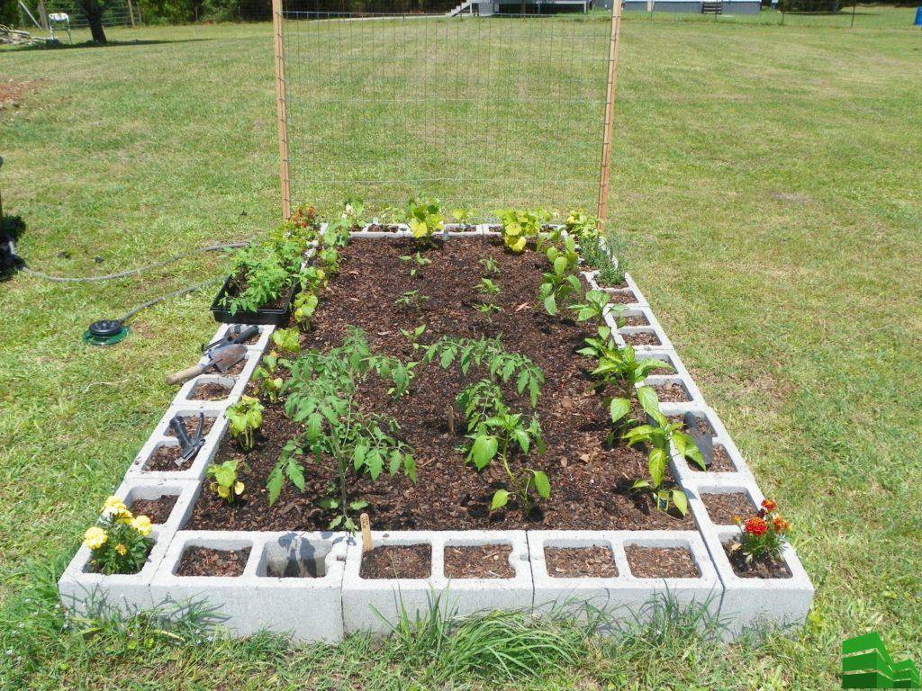 Из недорогих шлакоблоков сооружают и ограждения, и рокарий, куда высаживают овощи. В углублениях, как в кашпо, растут маленькие растения. Для такой конструкции даже раствор не понадобится.