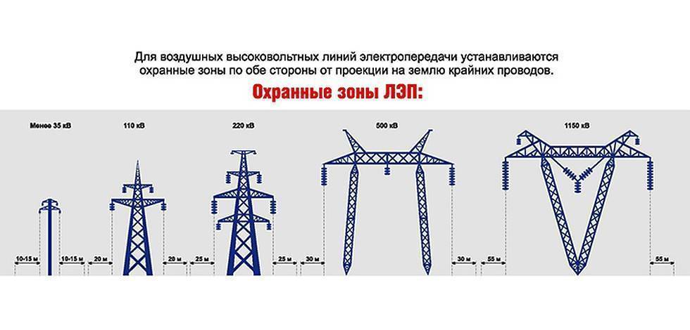 Охранные зоны ЛЭП и их размеры.