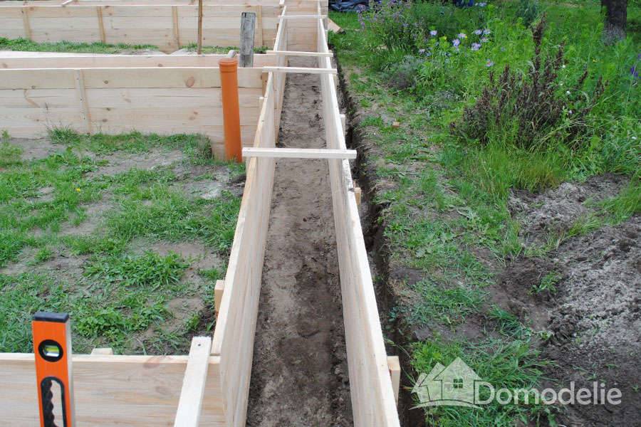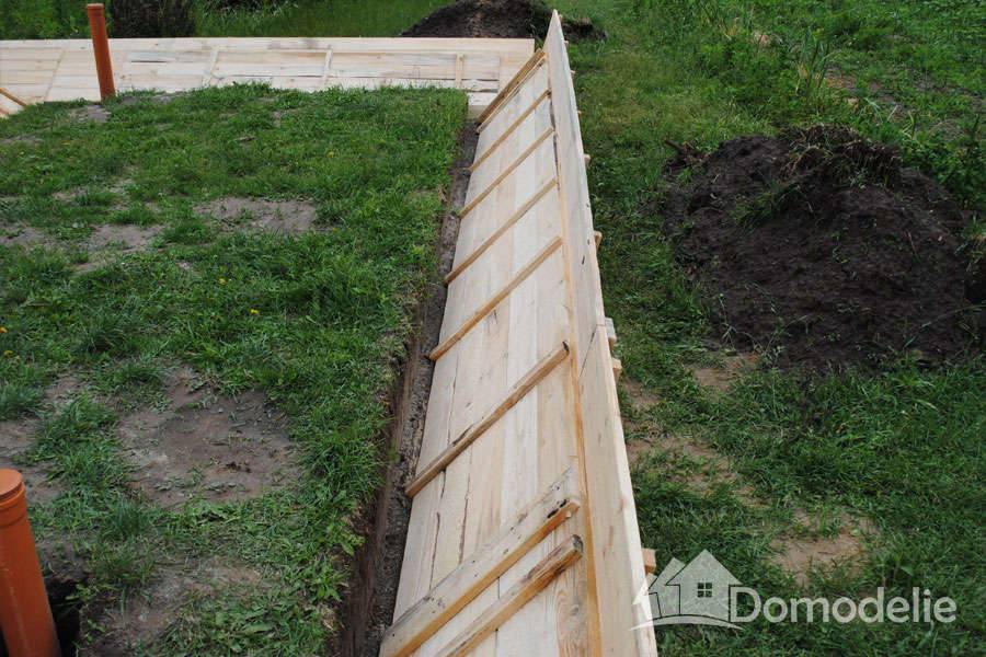 Решение, однако, было принято благодаря опыту поколений, взятому из старой строительной книжки «Как построить деревянный дом». В ней было указано, что опалубка для ленточного фундамента потребует для своего возведения самую «ходовую» доску-дюймовку и столбики-опоры из бруска 25х50 или 50х50.
