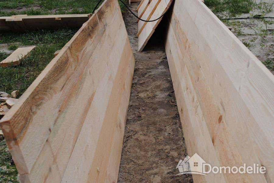 По неопытности к выбору доски и ее сечению подошли со всей ответственностью. Этому способствовал этап «обучения»: различные видеоролики и фотографии на строительных форумах пугали последствиями, к которым приводит наплевательство на этом этапе работ. Всякого рода советчики на перебой сыпали цифрами. Больше всего замечаний шло от бойких людей, которые сами построили дома, хотя на своей стройке и молотка в руках не держали, а самое тяжелое, что им приходилось поднимать, это упаковку денег бригадиру гастарбайтеров. Одни говорили, что доска должна быть не менее 40 миллиметров толщиной, другие указывали и большие числа, например, 50. Советы же бывалых строителей вообще вызывали шок, так как, по их мнению, использовать доски – это прошлый век; ответственные застройщики используют только ламинированную фанеру толщиной не менее 22 мм со столбиками-опорами в виде бруса 100х100 мм. Даже возникло подозрение, что подготовка выйдет дороже всей мелкозаглубленной ленты.